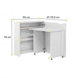 Des roues sont placées sous le bureau, ce qui permet une fermeture facile et rapide de ce dernier. Une fois en position fermée, le bureau ressemble à une commode sur laquelle vous pouvez mettre de la décoration par exemple.