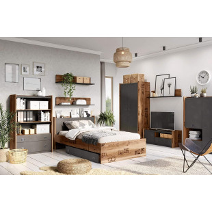 offre personnalisé FARGO - Pack chambre ado lit avec matelas + commode + armoire angle + bibliothèque