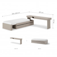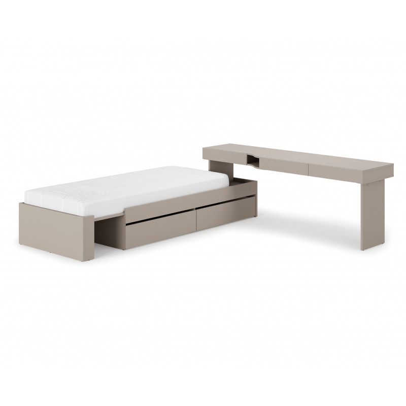 - Pack 3-en-1 évolutif : bureau + lit inclus + commode ou caisson en option.