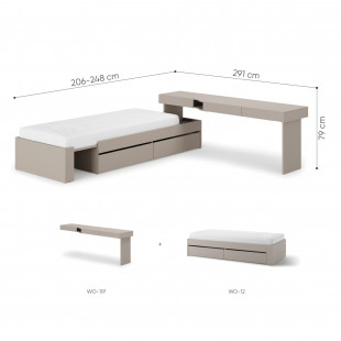 Conçu spécialement pour les petites chambres d’adolescents, ce pack Woow est une solution idéale pour allier fonctionnalité, design moderne et gain de place. Ce pack complet comprend un bureau spacieux, un lit avec ou sans le matelas, ainsi qu’une commode ou un caisson assorti en option, pour accompagner votre ado dans toutes ses activités : études, détente, création.