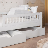 Pensé pour un usage quotidien, le lit FLORE offre une structure robuste et durable, garantissant stabilité et sécurité. Ses barrières latérales apportent une protection supplémentaire, tout en conservant une ligne épurée et contemporaine. Les deux grands tiroirs intégrés sous le couchage constituent un espace de rangement pratique pour la literie, les vêtements ou les jouets, permettant d’optimiser l’espace au sol.