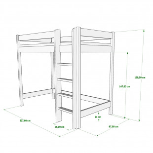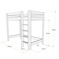 ALIX - Lit Mezzanine en bois, hauteur 180 cm